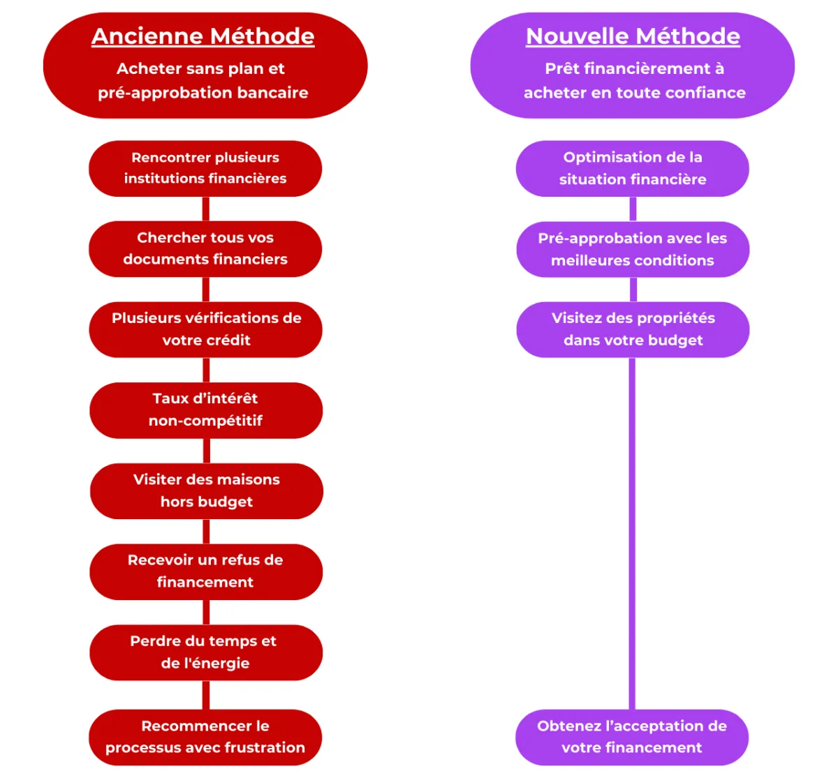 Nous offrons un accompagnement complet et personnalisé, permettant aux gens de se préparer FINANCIÈREMENT à l'achat d'une propriété et d'obtenir les meilleures conditions de financement possibles. Cela permet d'avoir les meilleurs paiements hypothécaires mensuelles et d'éviter les mauvaises surprises que peut apporter le manque de préparation. Dans un instant, je vous partagerai des EXEMPLES RÉELS qui vous surprendront.